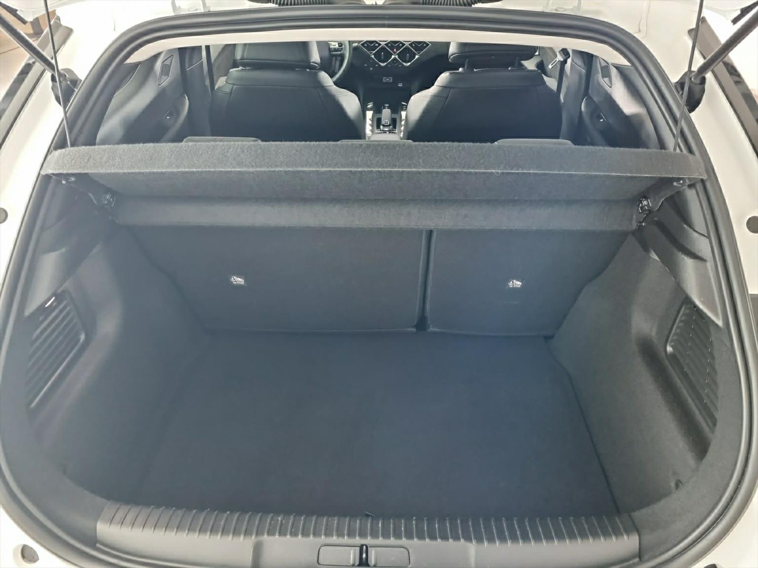 - Mattschwarzes DS-Logo am Kühlergrill und an der Heckklappe
