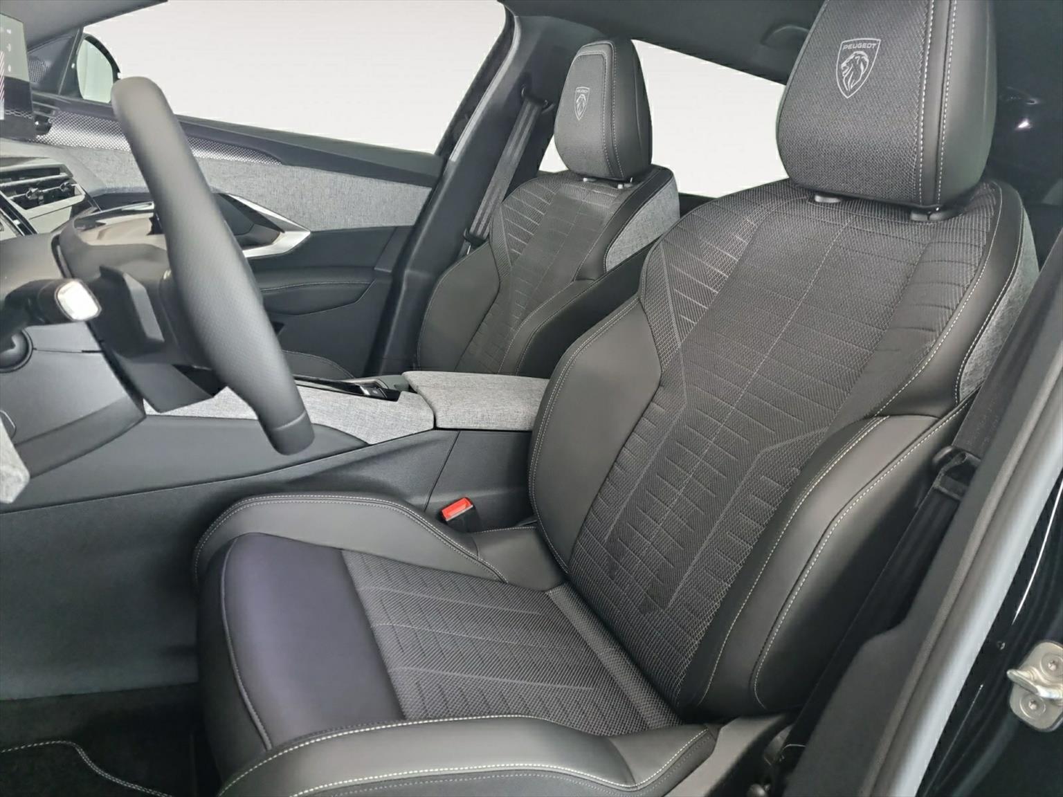 - Lenkrad: Kompaktes Lenkrad, glattes und perforiertes Narbenleder mit integrierten Bedienelementen in Lackschwarz, Dekor Grau Stène, Ziernähte in Iced Clay, Einlage in Lackschwarz mit 'GT'-Badge