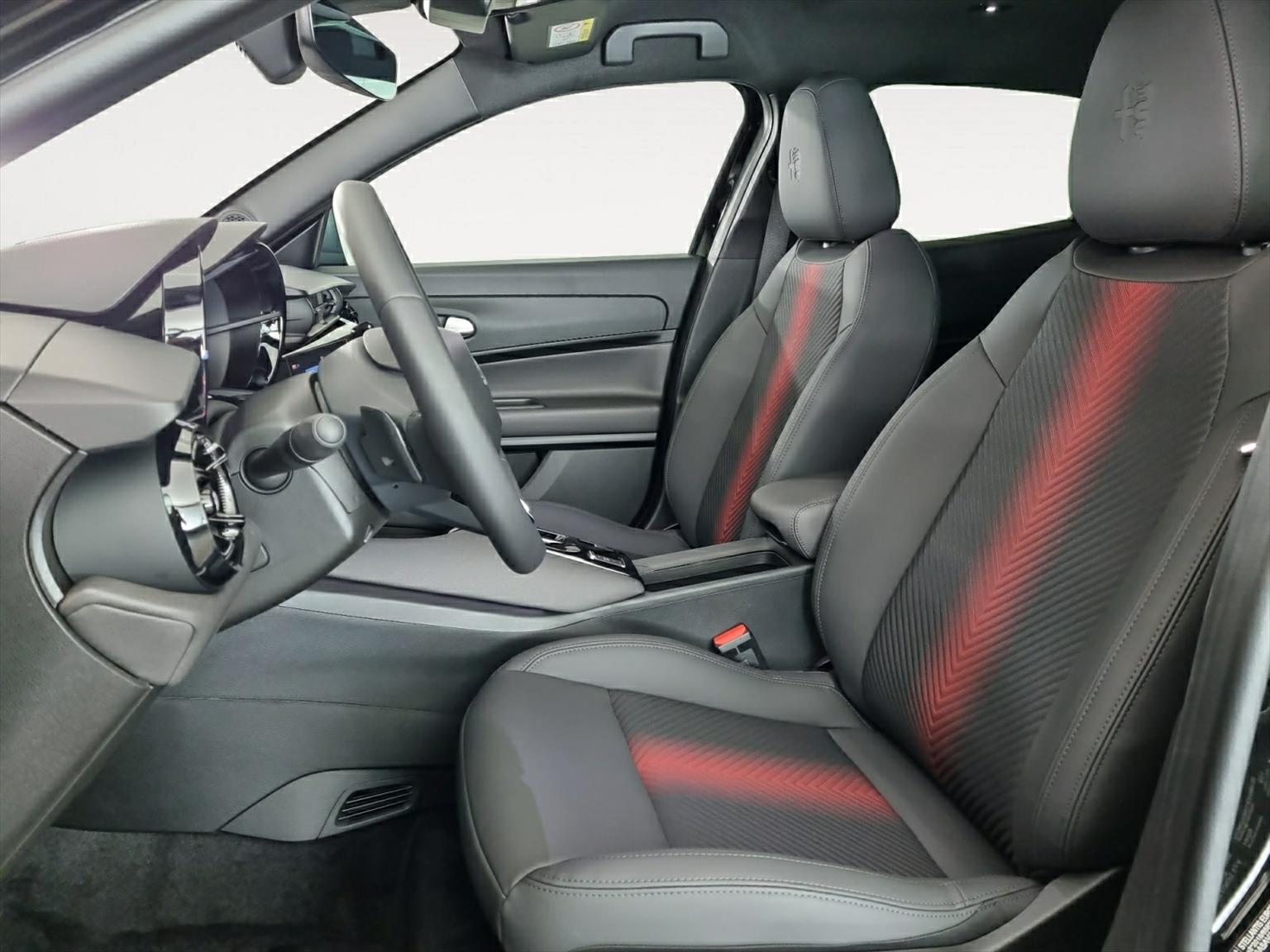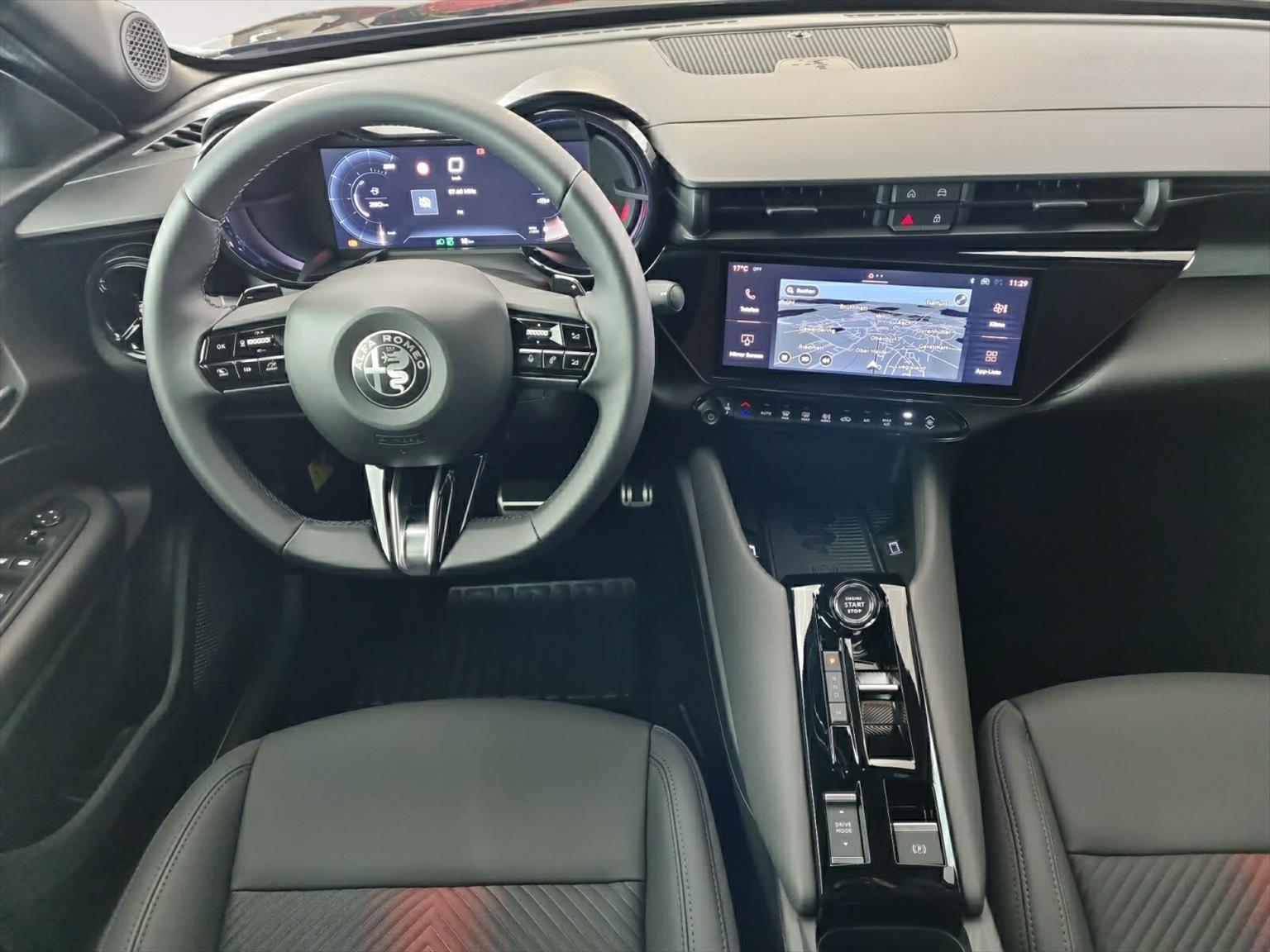 - Sitze: spiga - Stoff-/Kunstledersitze mit «Scudetto», Nero-Rosso, - Fahrersitz 6-fach elektrisch verstellbar, Lendenwirbelstütze, beheizbar, Massage-Funktion, - Beifahrersitz 6-fach manuell verstellbar, beheizbar, - Kopfstützen vorne mit geprägtem Alfa Romeo Logo, 3. Kopfstütze hinten.